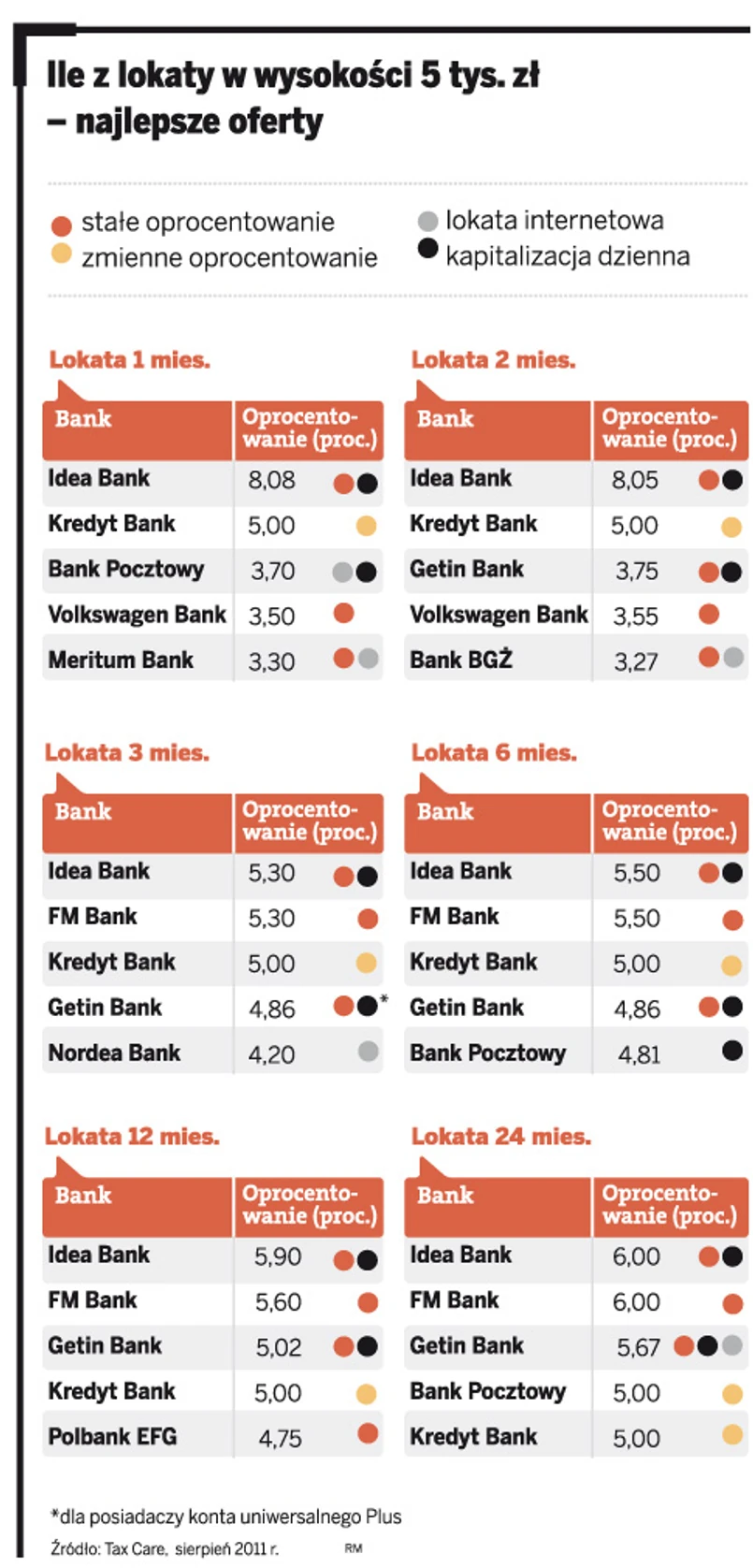– Na lokatach 1- i 2-miesięcznych Idea Bank oferuje stałe oprocentowanie w wysokości ponad 8 proc. przy dziennej kapitalizacji odsetek – mówi Agata Szymborska-Sutton z Tax Care.