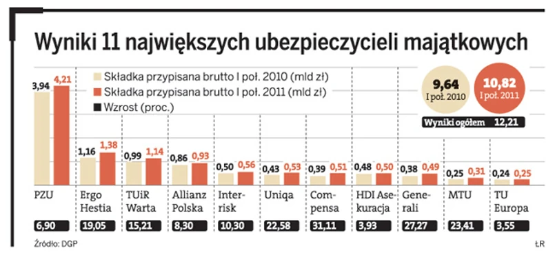 Największe towarzystwa majątkowe zebrały 10,9 mld zł składek.