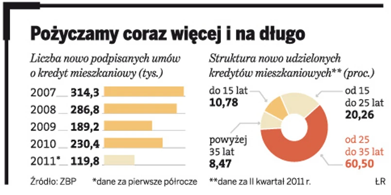 Wydłużanie czasu spłaty kredytu było świetnym sposobem na poprawienie zdolności kredytowej, bo zmniejszało miesięczną ratę. W sytuacji gdy wcześniejsze rekomendacje Komisji Nadzoru Finansowego nakazywały, by obciążenie ratami nie przekraczało 50 proc. dochodów netto, dłuższy czas spłaty był nieraz jedynym sposobem na uzyskanie przez klienta pożyczki. Jak pisaliśmy już wczoraj, od nowego roku nie będzie to możliwe.
