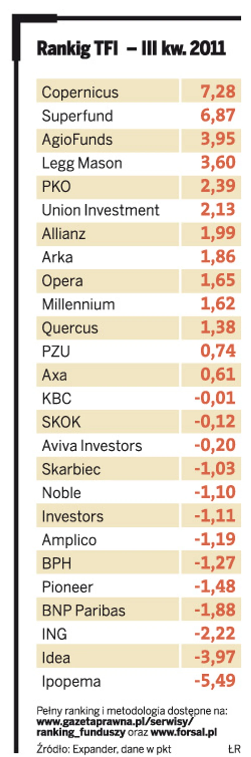 W comiesięcznym rankingu Expandera i „DGP” zwyciężyło Copernicus TFI z wynikiem 8,73 pkt. Było najlepsze także w całym III kw. (7,28 pkt).