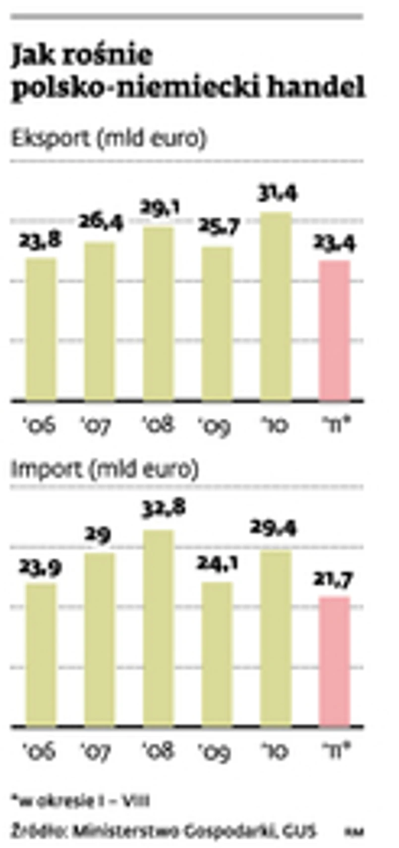 Przedsiębiorstwa mogą więc sobie poradzić, nawet w sytuacji spowolnienia. Pewne jest to, że w tym roku zostanie pobity ubiegłoroczny rekord w polskim eksporcie do Niemiec, który w 2010 r. osiągnął wartość ponad 31,4 mld euro. Wzrośnie on o co najmniej 10 proc.