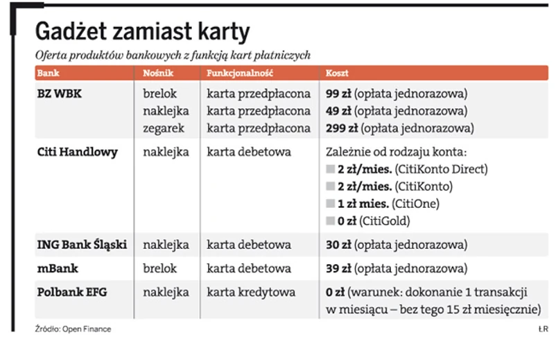 Takie naklejki od dłuższego czasu są też w ofercie ING Banku Śląskiego i Citi Handlowego. W ING taka naklejka kosztuje 30 zł na rok, a w Citi, zależnie od rodzaju konta posiadanego przez klienta, kosztuje od 0 do 2 zł miesięcznie.