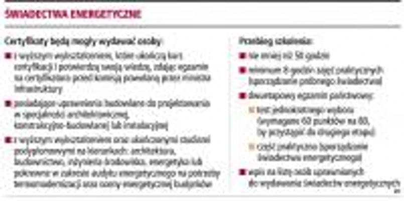 - Według różnych szacunków już w 2009 roku będzie potrzeba wystawienia około 1 mln certyfikatów. Aby przebiegało to sprawnie, potrzebna jest duża liczba osób z uprawnieniami do wydawania świadectwa - mówi Marcin Piotrowski, wiceprezes Konfederacji Budownictwa i Nieruchomości.