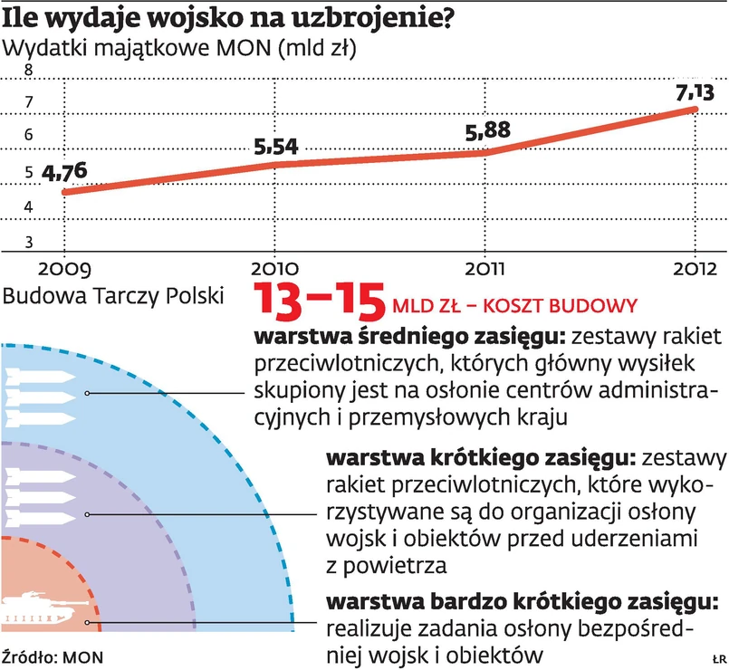 Ale to nie wszystko. Resort obrony narodowej musi także określić sposoby finansowania projektu. Koszt zbudowania nowoczesnego systemu obrony przeciwlotniczej we wszystkich warstwach wyniesie od 13 do 15 mld zł i nawet rozłożony na kilkanaście lat będzie stanowił poważne obciążenie dla budżetu państwa. Takie wydatki kilkakrotnie przewyższają bowiem środki dotychczas przeznaczane w planie modernizacji technicznej na obronę przeciwlotniczą.