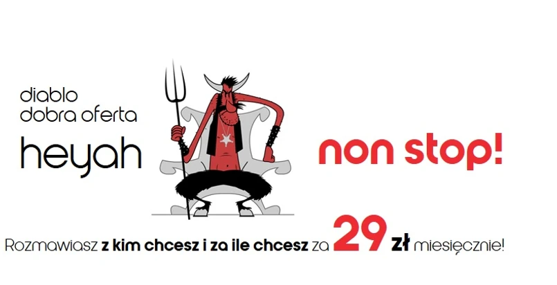 Heyah 15 maja br. wprowadza pierwszą w swojej historii ofertę abonamentową i to od razu w amerykańskim stylu. W heyah non stop rozmawiasz, SMS-ujesz ze wszystkimi sieciami w kraju bez końca i łączysz się z Internetem w umowie bez ograniczeń. Jeżeli potrzebujesz telefonu w dowolnym momencie możesz go dokupić na raty.