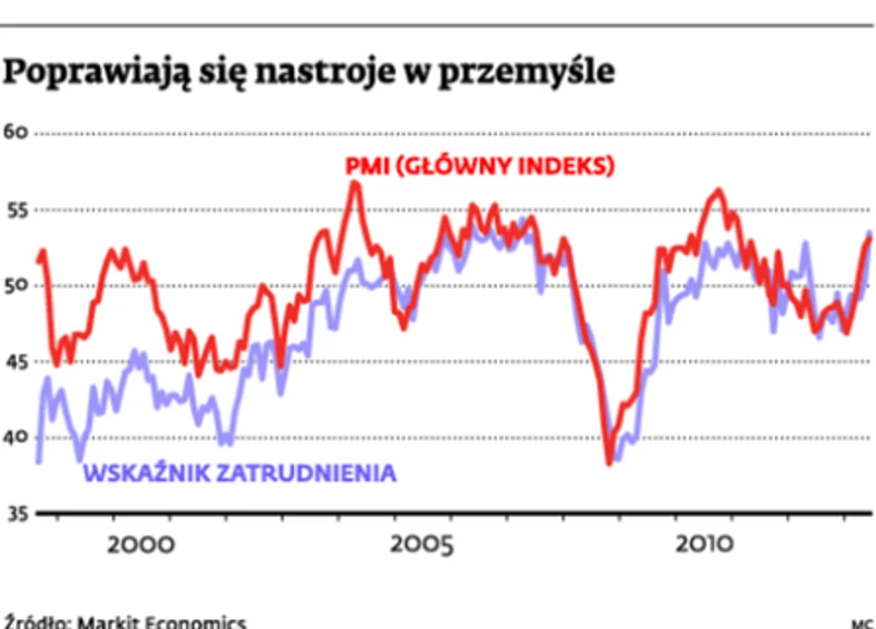 We wrześniu te nastroje nie były złe. Główny indeks wyniósł 53,1 pkt. Wskaźnik nie tylko utrzymał się powyżej 50 pkt (odczyty poniżej tej wartości oznaczają recesję w sektorze), ale też – inaczej niż na głównych rynkach Europy – wzrósł w porównaniu z sierpniem (o 0,5 pkt). I to mimo niewielkiego pogorszenia wskaźnika produkcji i nowych zamówień (oba indeksy nadal są powyżej 50 pkt). PMI wzrósł dzięki temu, że firmy przestają już zmniejszać stan zapasów towarów w magazynach i dynamicznie zwiększają zatrudnienie.