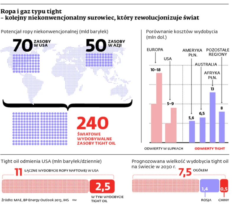 Z kolei w koncernie BP prognozują, że do 2030 r. globalna produkcja tight oil sięgnie 7,5 mln baryłek dziennie i odpowiadać będzie za 9 proc. naftowego zaopatrzenia na świecie.