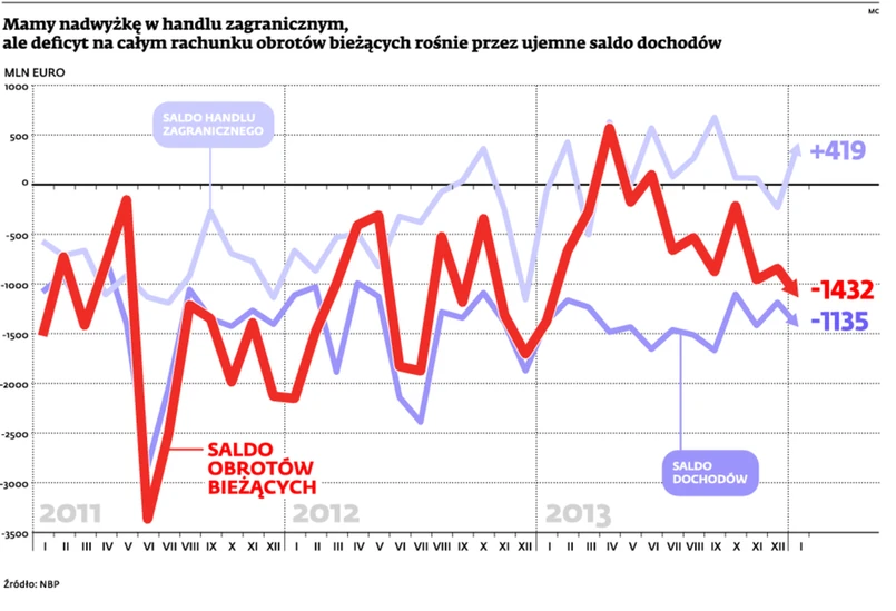 – Na to jednak nakłada się trwała zmiana, polskie firmy coraz częściej stają się centrami produkcyjnymi, a nie poddostawcami – mówi. Jego prognoza: nadwyżka w całym 2014 r. Choć prawdopodobnie nie będzie ona tak wysoka, jak w ubiegłym roku, kiedy wyniosła ponad 2 mld euro.