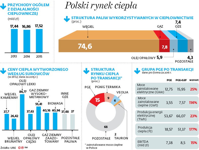 transakcje (chyba że chodzi o sprzedaż wielu zakładów w pakiecie, jak w tym przypadku) czy wielkie inwestycje. Wynika to z uwarunkowań technologicznych branży – ciepła, w przeciwieństwie do energii elektrycznej, nie da się przesyłać na wielkie odległości bez większych strat, stąd na rynku dominują niewielkie lokalne ciepłownie. Rynek jest zatem bardzo rozproszony, a mimo to cieszy się coraz większym zainteresowaniem wielkich koncernów energetycznych. Zawarta przez PGE transakcja jest tylko jednym z wielu dowodów na takie zainteresowanie.
