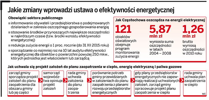 Szacuje się, że tylko ok. 30 proc. samorządów ma sporządzone plany poprawy efektywności energetycznej. Tylko nieliczne z nich są realizowane. Sytuację poprawić może ustawa o efektywności energetycznej, która ma wymusić na sektorze publicznym działania na rzecz oszczędzania energii. Prace nad nią trwają już od ponad trzech lat.