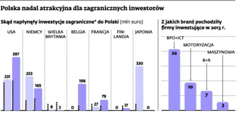Choć bezpośrednich inwestycji zagranicznych było mniej, przedsiębiorcy postanowili w nich utworzyć o 6 proc. więcej miejsc pracy niż rok wcześniej – w sumie blisko 18,9 tys. Pozwoliło nam to utrzymać trzecią pozycję w Europie, po Wielkiej Brytanii i Francji. – To najważniejsza wiadomość, bo na inwestycje poluje się właśnie po to, by powstawały dobrze płatne miejsca pracy i by dzięki temu można było ograniczać
