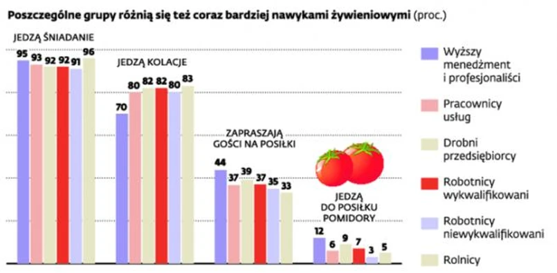 Coraz wyraźniej widać różnice w zwyczajach żywieniowych warstw społecznych. Decydują o tym budżet i moda.