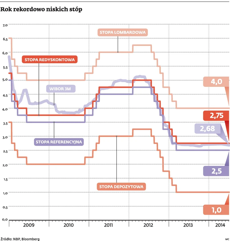 Obniżka stóp procentowych NBP oznacza na ogół spadek stóp rynkowych. Na przykład trzymiesięcznego WIBOR-u, który jest bazą do wyliczania oprocentowania większości kredytów w złotych. Praktyka rynkowa pokazuje, że wystarczy samo prawdopodobieństwo obniżki, by WIBOR spadał. Im niższy WIBOR, tym oczywiście niższe raty kredytów. Na ogół jednak musi upłynąć trochę czasu, by banki dostosowały się do nowej sytuacji – zwykle zmiany oprocentowania odbywają się w kilkumiesięcznych cyklach (na ogół raz na kwartał). Druga zależność: banki najpierw dostosowują koszt już udzielonych kredytów, a później dopiero nowo udzielanych. Zasady ustalania oprocentowania „starych” pożyczek regulują już zawarte umowy z klientami i banki muszą reagować. Przy nowych kredytach spadek stopy rynkowej mogą sobie zrekompensować wzrostem marży.