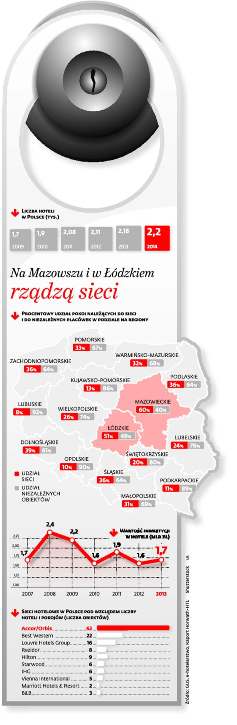 Inwestują przede wszystkim sieci. Obecnie pod markami międzynarodowymi działa w kraju 140 hoteli. Szacuje się, że do sieci należy ok. 40 proc. pokoi hotelowych.