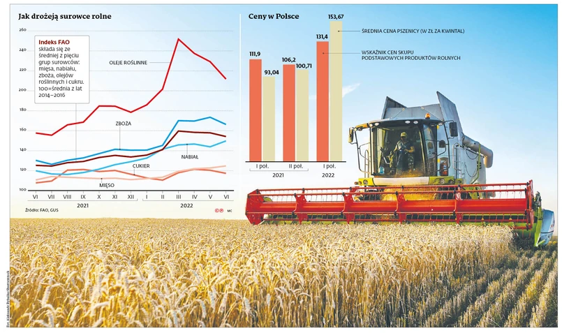 Według Jakuba Olipry, ekonomisty banku Credit Agricole i wykładowcy w SGH, wysokie ceny są w znacznym stopniu wynikiem wojny w Ukrainie oraz tego, co działo się przed jej wybuchem, czyli m.in. rosnących cen gazu i ropy naftowej, które sprawiły, że nawozy były droższe. – Wyższe ceny surowców rolnych przekładają się na inflację. Jednak surowce rolne to tylko jedna ze składowych kosztów branży rolno-spożywczej w przetwórstwie żywności. Istotne jest także to, co dzieje się z cenami energii, ropy, z kosztami pracy i transportu – wyjaśnia Jakub Olipra.