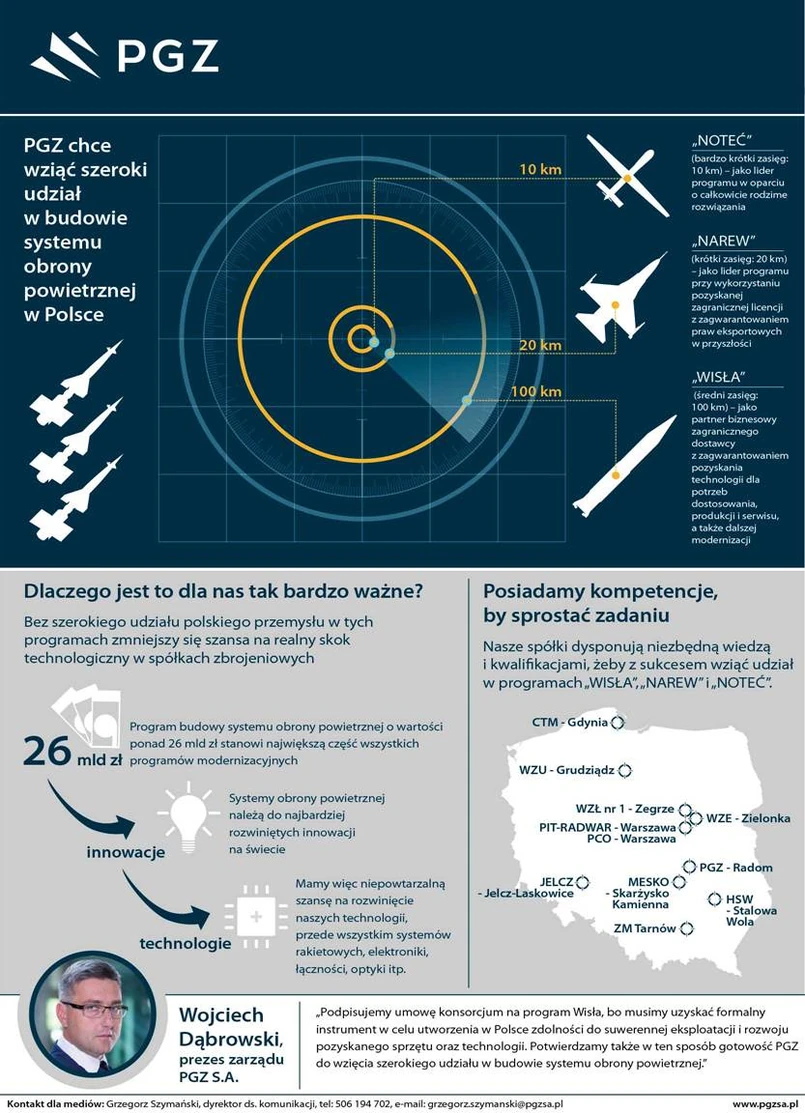 Wcześniej PGZ zawiązał konsorcjum do realizacji umowy na dostawę systemu obrony przeciwlotniczej bliskiego zasięgu „Narew”. Powołanie dwóch konsorcjów złożonych z tych samych podmiotów jest uzasadnione ze względu na dwa różne postępowania realizowane przez Inspektorat Uzbrojenia MON oraz różną rolę polskiego przemysłu w ich realizacji.