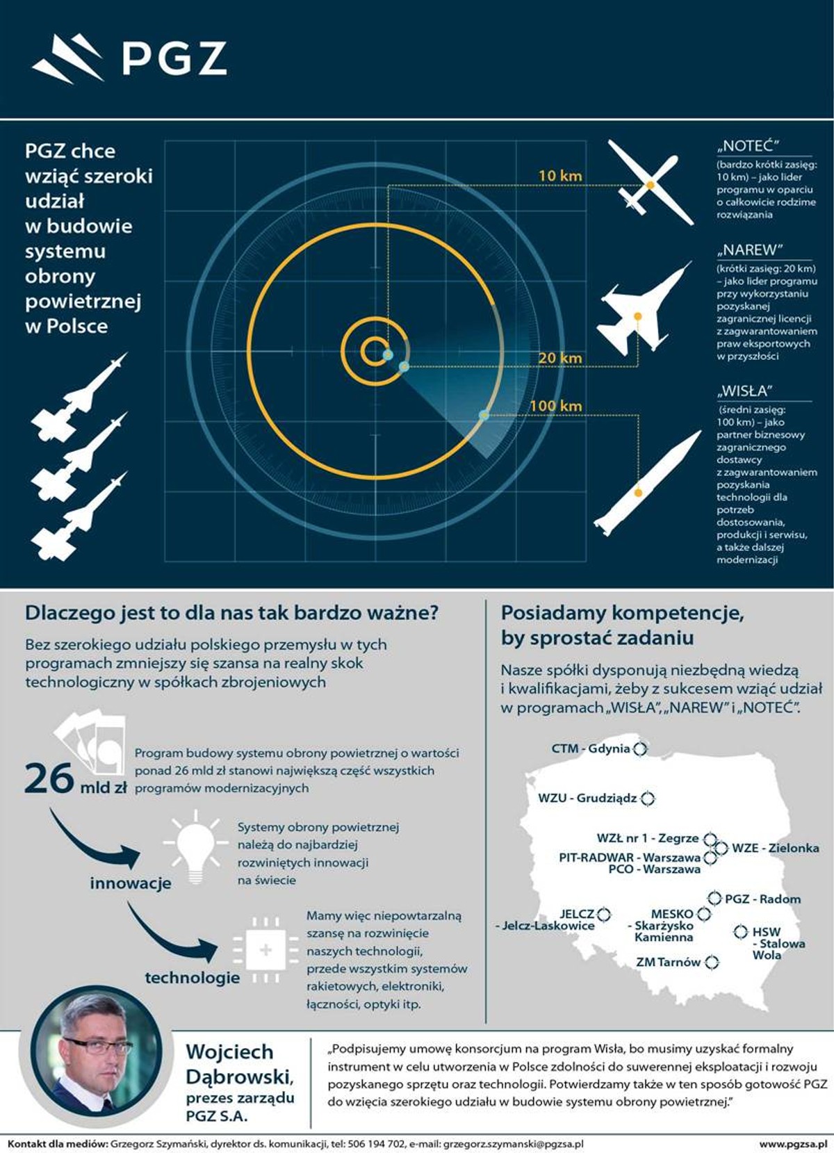 - Plany budowy przeciwlotniczych zestawów rakietowych dla polskiej armii to najważniejsza część całego programu modernizacji o wartości ponad 26 mld zł. Dlatego tak ważne jest, aby polski przemysł wziął jak najszerszy udział w powstaniu i eksploatacji zestawów średniego, krótkiego i bardzo krótkiego zasięgu. Systemy te należą do najnowocześniejszych na świecie i spowodują w Polsce rozwój m.in. takich dziedzin jak łączność, elektronika, optoelektronika – powiedział Zdzisław Gawlik, sekretarz stanu w Ministerstwie Skarbu Państwa.