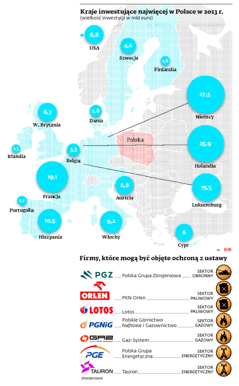 Projekt ustawy o kontroli niektórych inwestycji szykowany przez PO chroniłby polskie firmy przed wrogim przejęciem lub zmianą właściciela uderzającą w polskie bezpieczeństwo lub gospodarkę. Ustawa ma wprowadzić mechanizm kontroli inwestycji dokonywanej przez nabycie akcji czy udziałów w istniejących firmach także w sposób pośredni. Co ważne nie chodzi np. o blokowanie działalności polegającej na wybudowaniu zakładu. W takim przypadku mogą bowiem działać inne instrumenty jak koncesje. Z tego, że posłowie zajmą się projektem, cieszy się minister skarbu Włodzimierz Karpiński.