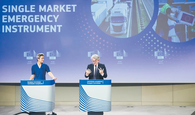 – Wyraźnie widzieliśmy w czasie kryzysu, że państwa ulegają pokusie wprowadzenia wewnętrznych ograniczeń na rynku (ograniczenia w eksporcie masek czy zboża, zamykanie granic) oraz stosowania dyskryminacyjnych środków (jak podwójne ceny paliw), które potęgują kryzys – ocenił komisarz ds. rynku wewnętrznego i usług Thierry Breton.