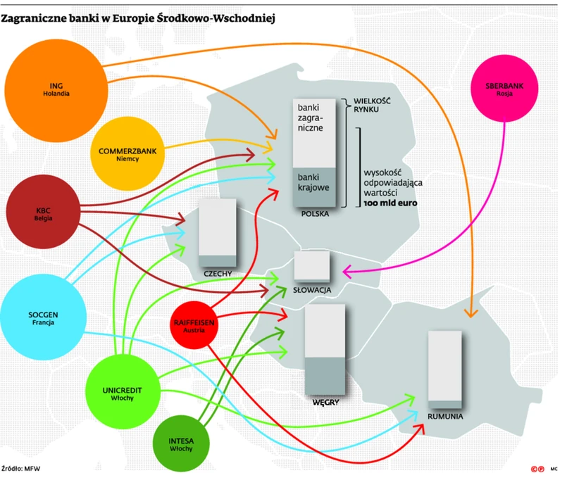 W obu przypadkach skorzystał hiszpański Santander. Najpierw w 2011 r. irlandzka grupa AIB sprzedała mu Bank Zachodni WBK, a rok później odkupił Kredyt Bank od belgijskiej grupy KBC. W efekcie Hiszpanie mają u nas trzeci co do wielkości bank, a pod względem wartości kontrolowanych aktywów są na drugim miejscu wśród zagranicznych inwestorów – po włoskiej grupie UniCredit, inwestorze strategicznym Banku Pekao.