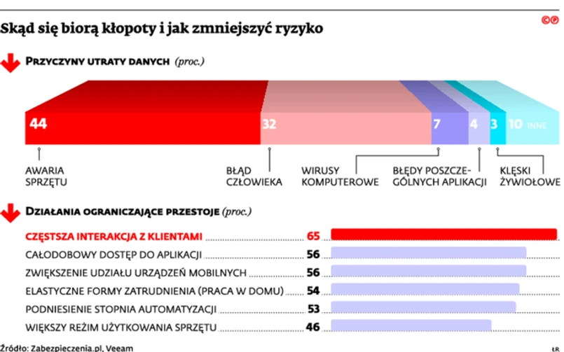 Najczęstszym skutkiem awarii jest utrata danych. W przeciętnej firmie informacje są trwale tracone przynajmniej dwa razy rocznie. Kosztuje to