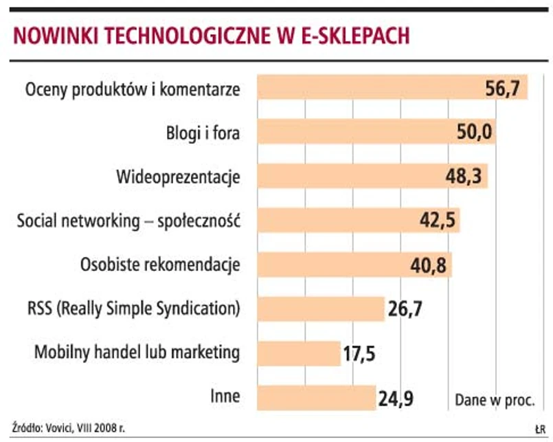 Konsumenci doceniają handlowców, którzy umożliwiają zapoznanie się z towarem. W ich e-sklepach najchętniej wydają pieniądze. Potwierdzają to badania globalnej firmy Vovici, która zajmuje się doradztwem w zakresie zarządzania społecznościami w sieci. Firma przebadała ponad 4 tys. właścicieli i kierowników sklepów internetowych w Unii Europejskiej i w USA. Ponad połowa z nich (57 proc.) przyznała, że ich sklepy, dzięki wykorzystaniu nowinek technicznych oraz najpopularniejszych narzędzi Web 2.0, znacznie (nawet o 50 proc.) zwiększają swoją sprzedaż.