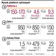 Platforma n ma ponad 142 tys. abonentów. Cyfrowy Polsat przekroczył w maju 1,5 mln klientów, a Cyfra + w pierwszym półroczu zwiększyła ich liczbę do 950 tys. klientów. Platformy zyskują kosztem operatorów kablowych, którzy w ofercie analogowej nie mogą już zwiększać liczby kanałów.