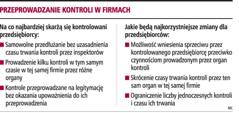 Tych uprawnień przedsiębiorcy domagali się od dawna. Do tej pory nie dysponowali środkami prawnymi, które służyłyby ochronie ich interesów. Projekt da im prawo do wniesienia sprzeciwu do organu kontroli, który naruszył zakaz równoczesności kontroli albo przekroczył limit czasu jej trwania.