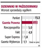Sześć ogólnopolskich dzienników zwiększyło sprzedaż w październiku, trzy pogorszyły wyniki. Gazeta Prawna zwiększyła w tym roku wartość swojej marki.