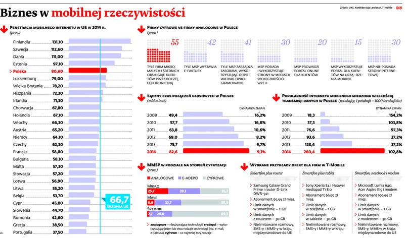 przedsiębiorca? Nielimitowanych rozmów, SMS-ów i oraz stałego dostępu do skrzynki pocztowej. – Możliwość kontaktu z klientami z dowolnego miejsca staje się kluczowym elementem prowadzenia firmy. Oczywiście w tym kontekście niezbędny jest dostęp do stabilnej i szybkiej sieci – mówi Marta Szwakopf, kierownik działu marketingu SOHO w T-Mobile Polska S.A.