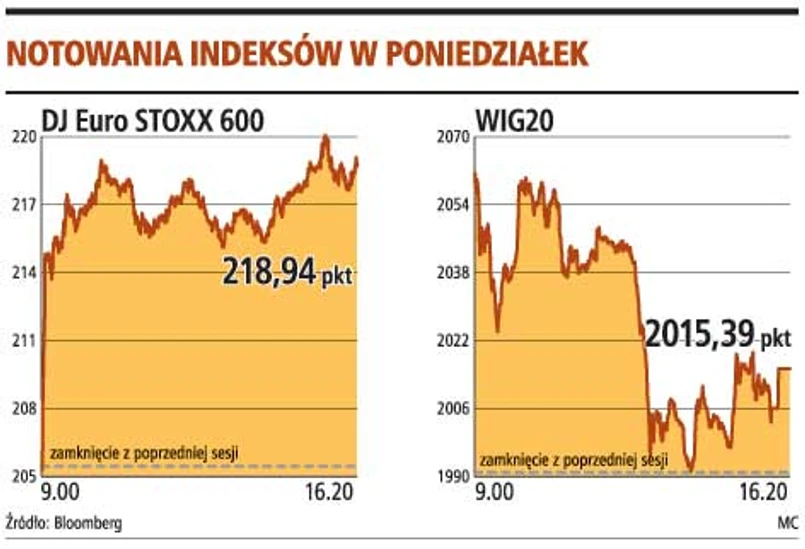 W Warszawie od samego początku skala wzrostów była mniejsza niż w Europie Zachodniej, Czechach i na Węgrzech. Podobnie jak w Budapeszcie i Pradze przed godz. 11.00 indeks WIG20 zaczął oddawać to, co wczoraj rano zyskał. Około 14.00 zbliżył się do poziomu piątkowego zamknięcia. Potem indeks znów rósł. Wśród firm o największej kapitalizacji przez sporą część dnia na minusie były akcje największych banków - Pekao i PKO BP - oraz KGHM. Na tych papierach oraz akcjach PKN Orlen i TP SA koncentrował się handel.