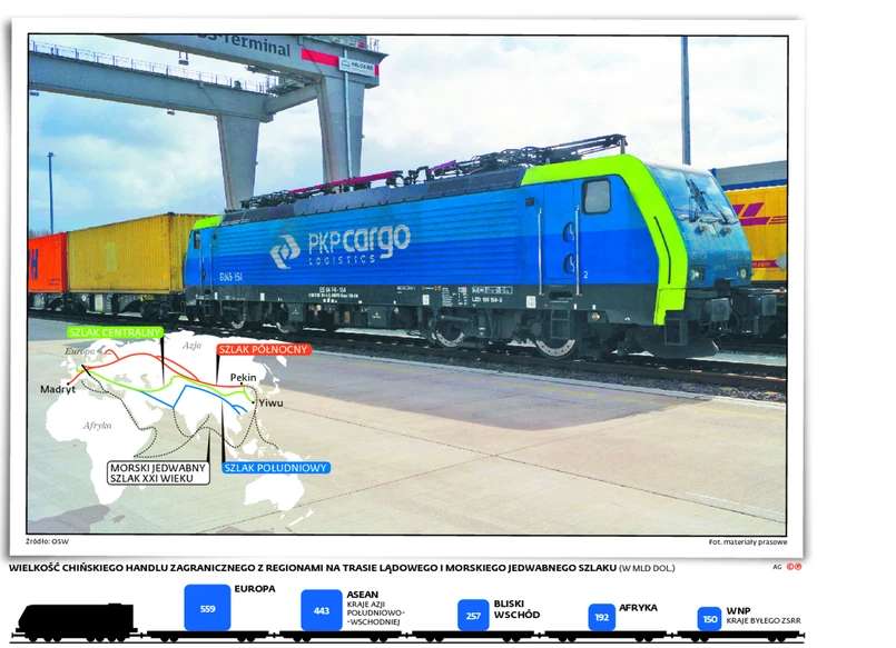 PKP Cargo też próbuje działać dwutorowo – ma umowy bezpośrednio z partnerami chińskimi (np. z prowincją Zhengzohou), ale oferuje też paletę usług logistycznych (w tym przewóz kolejowy na trasie z Małaszewicz do terminali na terenie UE) operatorami działającym na jedwabnym szlaku. Bo najwięksi spedytorzy oferują dziś z Chin głównie transport drogą morską, ale też przewozy towarów pociągami, np. do Warszawy lub Łodzi, a potem rozwożenie najczęściej ciężarówkami do różnych miast Europy.