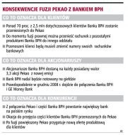 Według deklaracji zarządu klienci, którzy zostaną przeniesieni do Pekao, będą mieć te same produkty, co w Banku BPH. W środę Komisja Nadzoru Bankowego wydała zgodę na podział Banku BPH, co było warunkiem koniecznym do przeprowadzenia fuzji prawnej. Oprócz zgody KNB potrzebne jest także zatwierdzenie przez Komisję Nadzoru Finansowego prospektu emisyjnego Pekao tzw. akcji podziałowych.