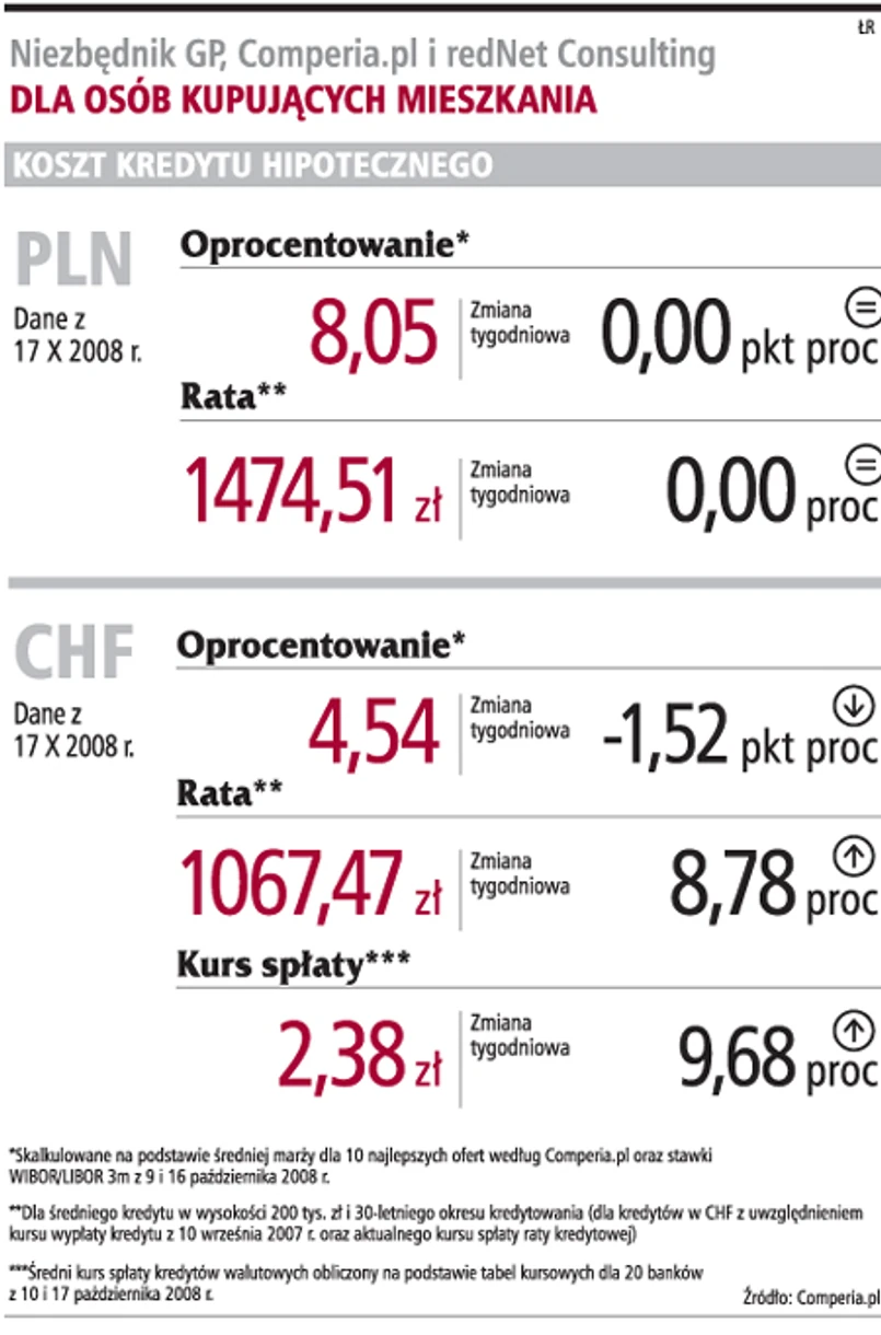 Kredytobiorcy stawiający na złotówkę mogą być zadowoleni. Rata przykładowego kredytu hipotecznego w rodzimej walucie, wyliczona przez Comperię, nie zmieniła się w porównaniu z poprzednim tygodniem i nadal wynosi 1474,51 zł. Bez zmian pozostaje również oprocentowanie - 8,05 proc.