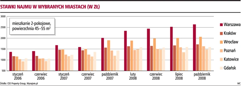 - W najbliższych miesiącach w Warszawie nie należy spodziewać się większych zmian cen wynajmu mieszkań - mówi Marcin Drogomirecki z serwisu Oferty.net. Ceny i tak już są bardzo wysokie. Wynajęcie kawalerki to teraz wydatek nawet do 1,5 tys. zł miesięcznie i dla wielu osób jest to cena zaporowa. Dalsze podwyżki mogłyby zmniejszyć popyt na mieszkania. Z drugiej strony utrudniony dostęp do kredytów hipotecznych może spowodować, że ci, którzy mieli kupić mieszkanie, zdecydują się na wynajem. Jednak w najbliższym czasie nie spodziewamy się gwałtownych zmian na tym rynku.