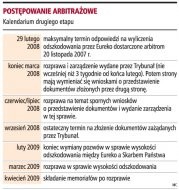Tymczasem, jeśli oprzeć się na informacji resortu skarbu dla Komisji Skarbu Państwa, ostateczny wyrok przed Trybunałem Arbitrażowym zapadnie nie wcześniej niż w kwietniu 2009 r. Wtedy też kończy się termin na składanie memoriałów po marcowej rozprawie w sprawie odszkodowania. Termin podania ostatecznego wyroku arbitrzy mają dopiero ustalić.
