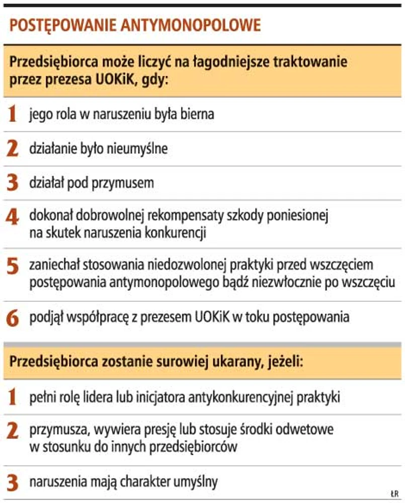 - Wśród okoliczności łagodzących jest przesłanka współpracy z prezesem Urzędu w toku postępowania. Jeżeli przedsiębiorca dostarcza dowodów i ma świadomość tego, że jego działanie stanowi naruszenie, to jest to brane pod uwagę. Wszystko to działa na jego korzyść - tłumaczy Wojciech Szymczak.