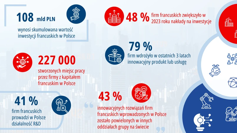 Od ponad trzech dekad firmy francuskie aktywnie uczestniczą w polskim życiu gospodarczym, odgrywając istotną rolę w transformacji krajowej gospodarki. Ich obecność jest zauważalna w innowacyjnych, jak i kluczowych dla infrastruktury i efektywności gospodarczej sektorach.