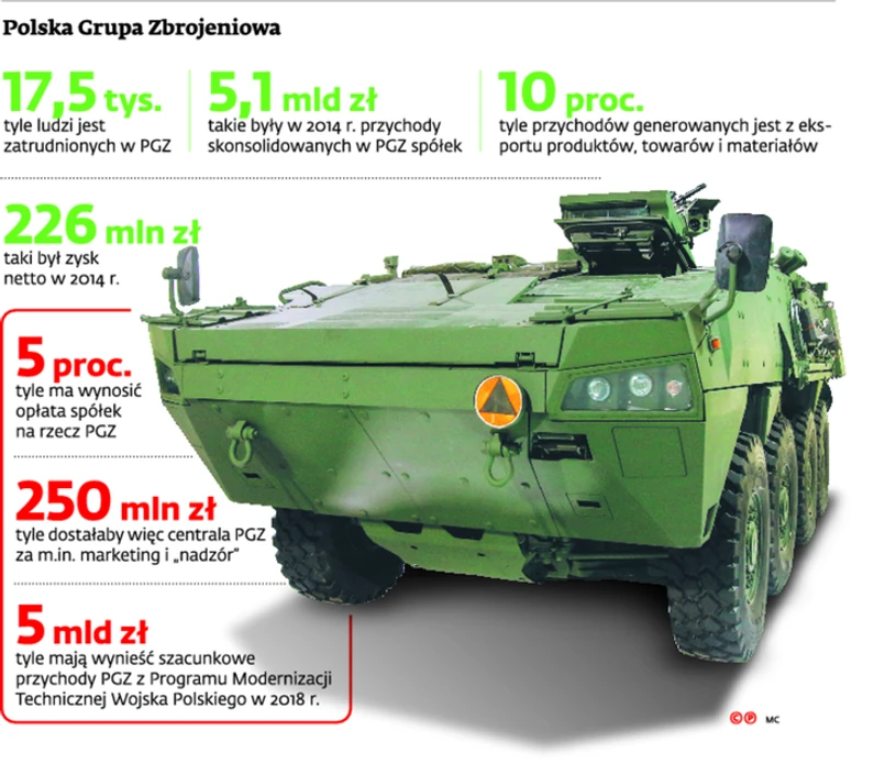 Polska Grupa Zbrojeniowa to podmiot, który ma służyć konsolidacji polskiej zbrojeniówki. Na razie tworzy ją kilkadziesiąt spółek, które mają oddzielne osobowości prawne. W maju z centrali PGZ wysłano do spółek podpisane już przez prezesa grupy umowy, które w uproszczeniu przewidują, że od każdej sprzedaży spółka będzie pobierać swoistą prowizję, m.in. za nadzór właścicielski i marketing.