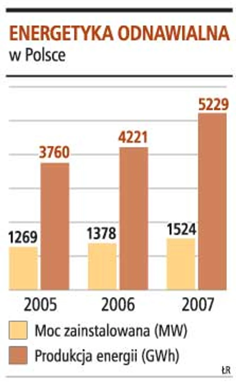 Energetyka odnawialna rozwija się za wolno. W ubiegłym roku energii odnawialnej nie starczyłoby nawet dla jednej Warszawy. A udział zielonej energii w sprzedaży energii elektrycznej ogółem ma rosnąć - z 5,1 proc. w 2007 roku (których nie wykonano) do 12,9 proc. w 2017 roku.