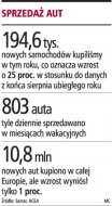 aut niż rok wcześniej. A branża motoryzacyjna czeka na jesienny boom. Nawet jeśli konserwatywnie założymy, że przez cztery miesiące salony będzie opuszczało tylko tyle aut co późną wiosną, czyli 25-27 tys. sztuk, to na koniec roku z salonów może wyjechać nawet nowych 300 tys. aut.
