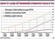 TP nie ujawniała też informacji o liczbie pozyskanych użytkowników telefonii internetowej (VoIP). W 18 miesięcy od wprowadzenia usługi do oferty zdobyła ona 96 tys. klientów, z czego 82 tys. w tym roku.