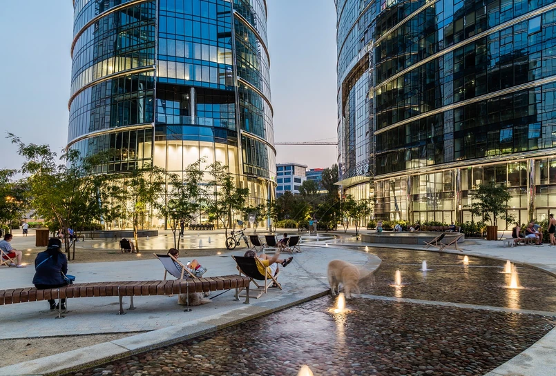 Warsaw Spire to nie tylko biura. Wraz z biurowcem powstała wartościowa i atrakcyjna tkanka miejska. Zamknięty przez dziesięciolecia kwartał pomiędzy ulicami Towarową, Grzybowską, Wronią i Łucką stał się otwartą przestrzenią dla wszystkich mieszkańców. W jego centrum, jako integralna część projektu, powstał plac Europejski – pierwszy tej skali plac miejski w Warszawie, spójnie zaprojektowany i zrealizowany przez dewelopera na prywatnej działce. W postindustrialnej przestrzeni powstała wysokiej jakości przestrzeń publiczna z fontannami i zielenią, którą pokochali warszawiacy i turyści. Można tu spotkać mieszkańców wypoczywających na rozłożonych leżakach, dzieci pluskające się w fontannach oraz grupy rodzin i znajomych, którzy wykonują sobie pamiątkowe zdjęcia na tle Warsaw Spire.