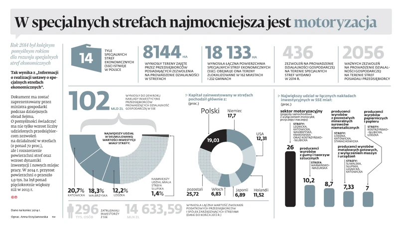 Rok 2014 był kolejnym pomyślnym rokiem dla rozwoju specjalnych stref ekonomicznych - wynika z "Informacji o realizacji ustawy o specjalnych strefach ekonomicznych".