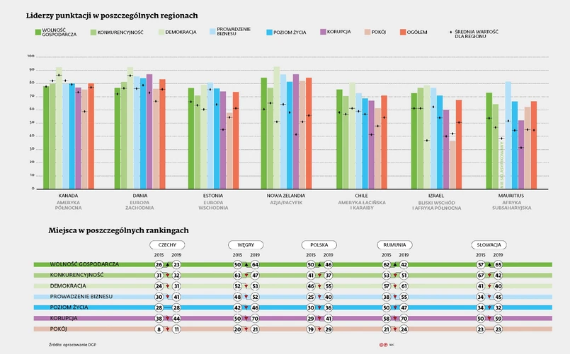 Nie są to wszystkie globalne porównania. Ujęcie kolejnych mogłoby mieć wpływ na wyniki średniej wyliczanej dla Polski i innych krajów. Na przykład uwzględnienie opracowywanego przez organizację Reporterzy bez Granic indeksu wolności prasy spowodowałoby, że średni wynik dla Polski poszedłby w dół (w ostatnim zestawieniu byliśmy na 59. miejscu, podczas gdy w 2015 r. na 18.). Fakt, że posługujemy się kilkoma zestawieniami gospodarczymi, podnosi wagę ekonomii i biznesu w wyliczaniu średniego wyniku Polski w porównaniu z innymi krajami.